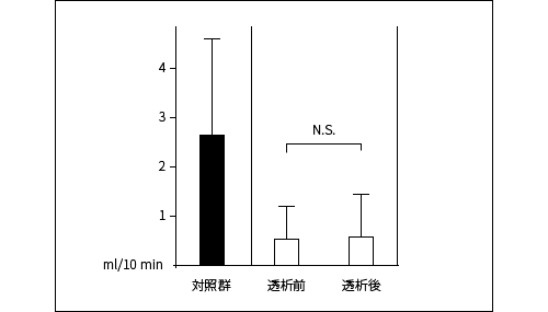 なお、以下のとおり、透析患者では正常人の1/4くらいまで唾液量が減少しています。