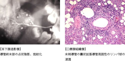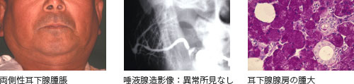 | 臨床症状: | 腺組織(耳下腺、顎下腺)の無痛性再発性腫脹、炎症所見は認められない |